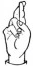 На ћирилици написано МИЛАН ПУХАЛО састоји се из 11 слова [?]. Исписано ћириличном једноручном азбуком за глувонеме: